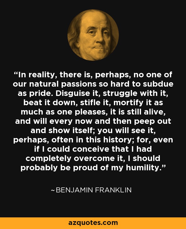 “Pride is a deadly cancer. It is a gateway sin that leads to a host of other human weaknesses. In fact, it could be said that every other sin is, in essence, a manifestation of pride.